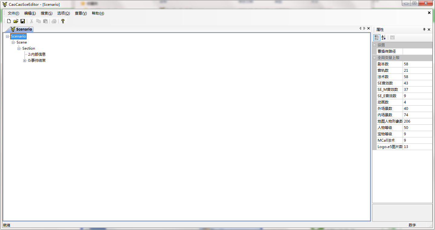 Caocaosceeditor官方版是一款功能强劲实用的剧本编辑软件。Caocaosceeditor官方版使用树形控件显示剧本结构,有支持剧本间复制、粘贴可以添加子事件、修改各项代码的参数。软件还可以在剧本中搜索代码,可以显示剧本中使用的变量列表等功能。