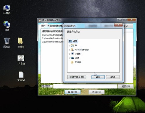 任意文件隐藏到图片小工具官方版功能为将任意文件隐藏到图片。