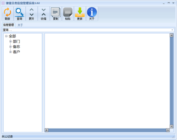 便捷分类信息管理系统最新版是一款功能强劲实用的且专门用于帮助用户进行信息管理的软件,便捷分类信息管理系统最新版软件支持查询、支线文档添加与管理功能,对于有非常多信息的用户来说,利用软件能够更好的管理,而且软件小巧好用,能够满足用户的大部分需求。