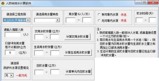 人防给排水计算软件最新版是款高效专业且实用性能非常稳定的人防给排水计算软件,人防给排水计算软件最新版内置强大的功能,其软件可以帮助用户计算人防给排水设计中的饮用水贮水量、生活用水贮水量以及单元内总贮水量,为相关设计工作人员提供了帮助。