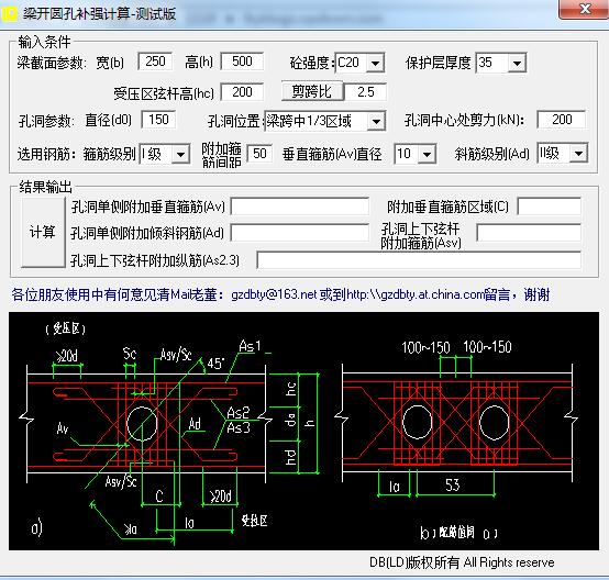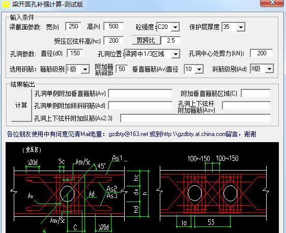 梁开圆孔补强计算最新版是款设计相当专业且计算准确的工程计算工具,梁开圆孔补强计算最新版主要是用来计算梁的开口大小,软件拥有直观的操作界面,丰富的功能,其软件体积小,计算快,能够计算出孔洞单侧附加钢筋,使用方便,用户只需通过输入相关条件,即可计算出结果输出。