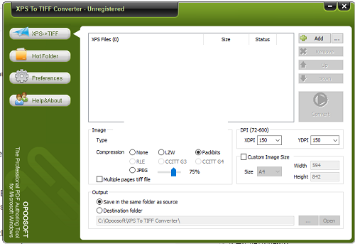 热文件夹是程序监视的任何用户定义目录。一旦将所有包含XPS的文件复制或移动到其中,OpooSoft XPS To TIFF