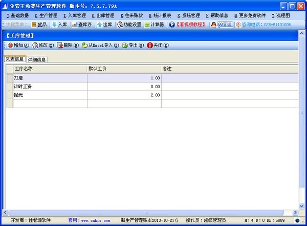 企管王生产管理正式版是款高效实用且通用性强的生产管理软件。企管王生产管理正式版效掌握各项制造活动信息,管理生产进度,提高生产效率、减少车间在制品、降低损耗与成本、提高产品质量与客户满意度。其适用于食品、服装、保健品、电子、贸易、物资、化妆品、电器等工业、商业、贸易等各领域的企业、个商、个人。