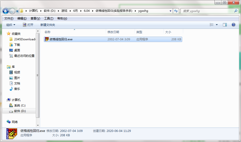 2.解压依格线性回归软件,运行“EXE.文件”
