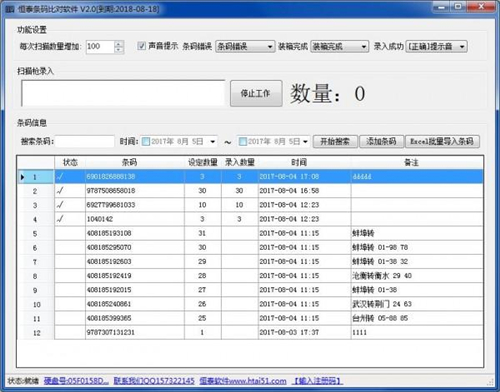 恒泰条码比对软件最新版是一款美观大方、强劲实用的条码扫描对比软件,恒泰条码比对软件最新版可以通过预先设置好的条码及数量进行对比,比对条码时,错误或者正确都有声音提示,非常实用!