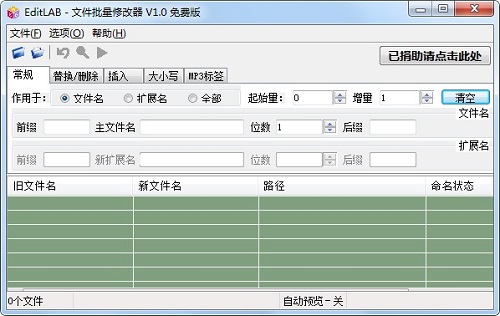 EditLAB官方版是一款功能实用的文件批量修改工具,EditLAB官方版主要功能包括替换/删除、插入、大小写、MP3标签等,可以帮助用户对rar、ZIP、EXE等Winrar支持的所有文件进行再封装,删除添加,EditLAB支持批量修改,操作十分方便。