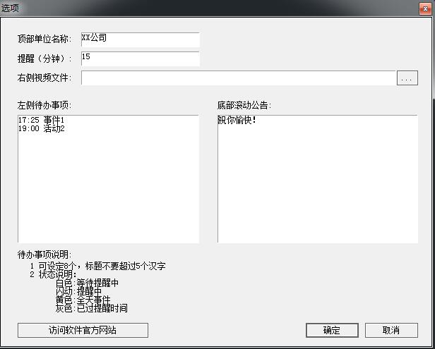 微润大堂公告牌软件官方版是一款非常适用于公告牌视频宣传的专业化应用工具,微润大堂公告牌软件官方版可以自定义单位名称、提醒、视频文件、待办事项和滚动公告内容,编辑单位名称、提醒、视频文件、待办事项和滚动公告内容即可全屏显示。