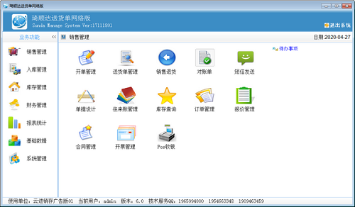 《琦顺达送货单网络版》是一款专为中小型企业或个体户定制的开单软件,本软件依据我公司在各种行业内积累的丰富的信息化经验而研发,结合各行各业的特点而量身订做的管理系统。琦顺达送货单打印软件源自于我司大型erp系统框架并依据中小型企业的实际情况而研发,功能强大、操作简便、且具有超强的个性化能力,可满足不同客户的特殊要求,网络版支持多用户、跨区域同时使用,无论您在公司、在家里,还是在外地出差,您都可以实时打开电脑或手机,了解企业的经营情况。