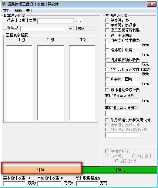 道路桥梁工程设计收费计算软件最新版是一款十分优秀和出众且专门为了帮助道路桥梁工程专业的用户进行收费计算的软件,道路桥梁工程设计收费计算软件最新版涵盖了道路桥梁建筑过程中所需要的所有收费标准,用户只需要将需要的费用大概填上去就能得到一个比较准确的估算值。