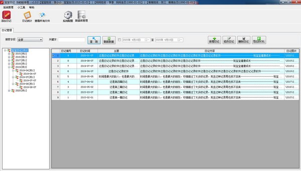 5、左边树型栏:可以直观体现出并统计哪年哪月哪日写的日记及数量;