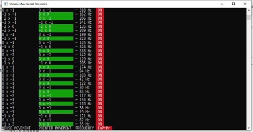 屏幕光标移动距离(第二列), 第三列是频率(不知道是啥), 第四列是说你是否启用了鼠标加速.