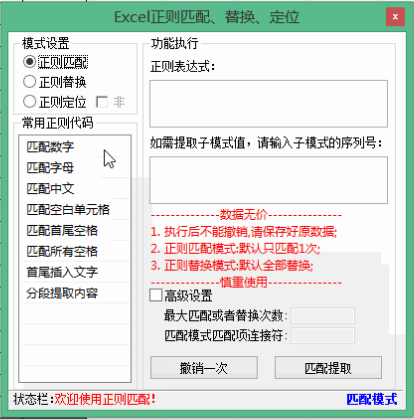 Excel正则匹配提取替换定位工具绿色版应用为AHK编写,用于EXCEL中