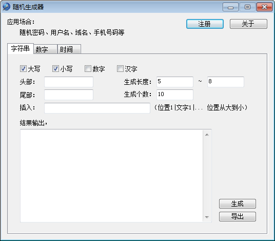 可单独生成大写、小写、数字字符串