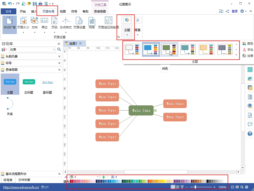 4、思维导图菜单中,可以通过软件内置的“思维导图主题”快速美化主题。