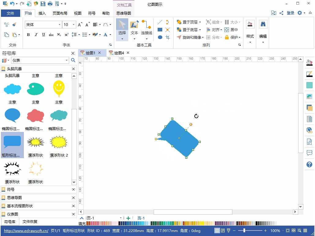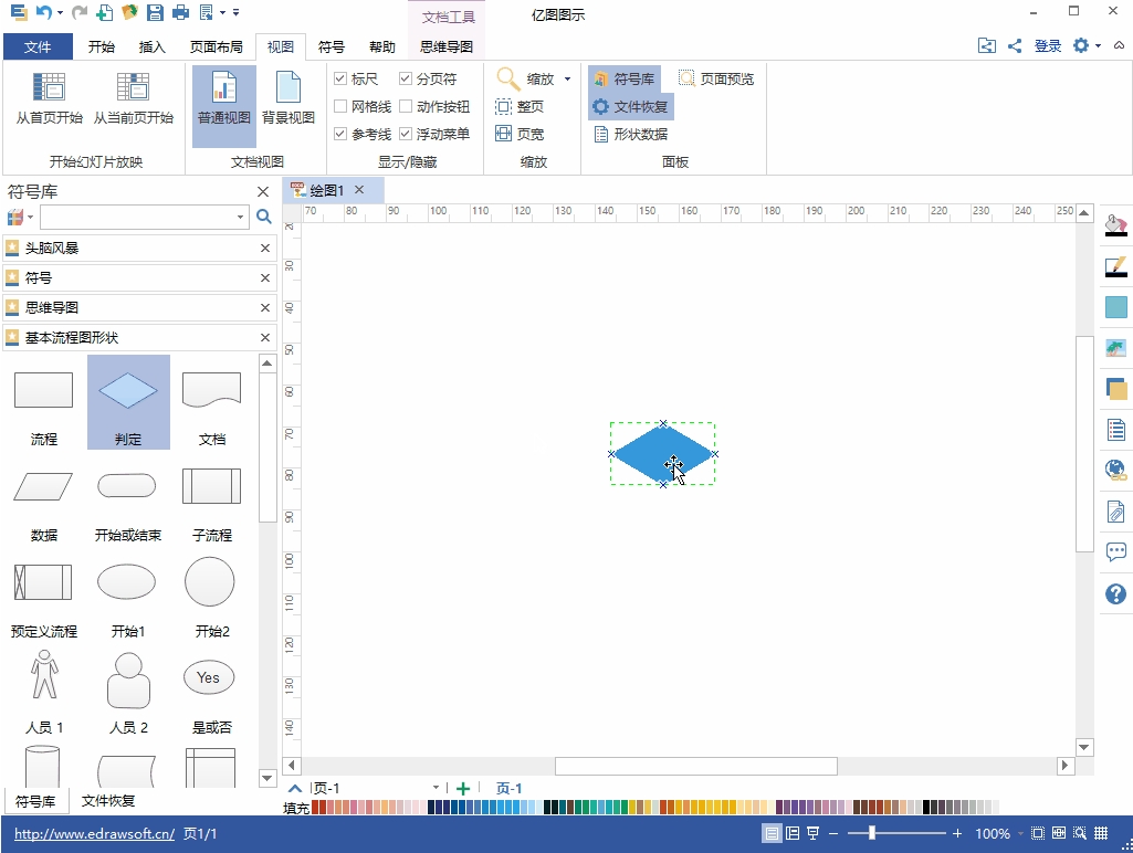 在打开模板或者例子的时候,相关的符号库就会被打开。只需将您需要的形状符号拖拽到绘图页面即可开始绘图。