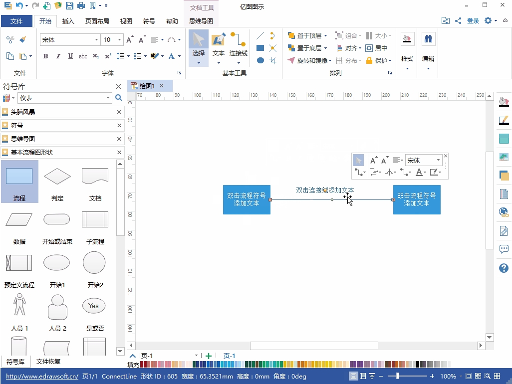 温馨提示:亿图根据图表的不同特点设计相应的形状。在绘制流程图的的时候,流程图的基本符号可以从图片显示的四个方向进行连接。