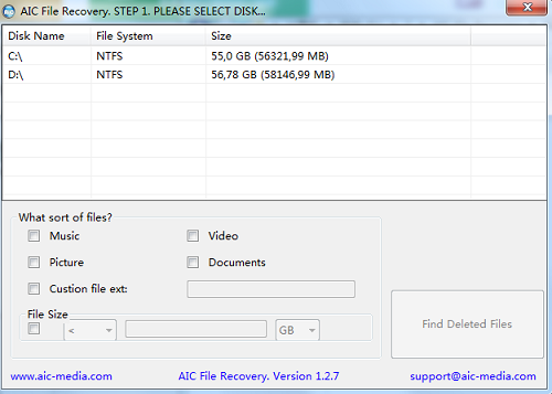 AIC File Recovery绿色版是一款AIC文件恢复软件,可以从FATA32和NTFS磁盘中恢复指定文件,AIC File