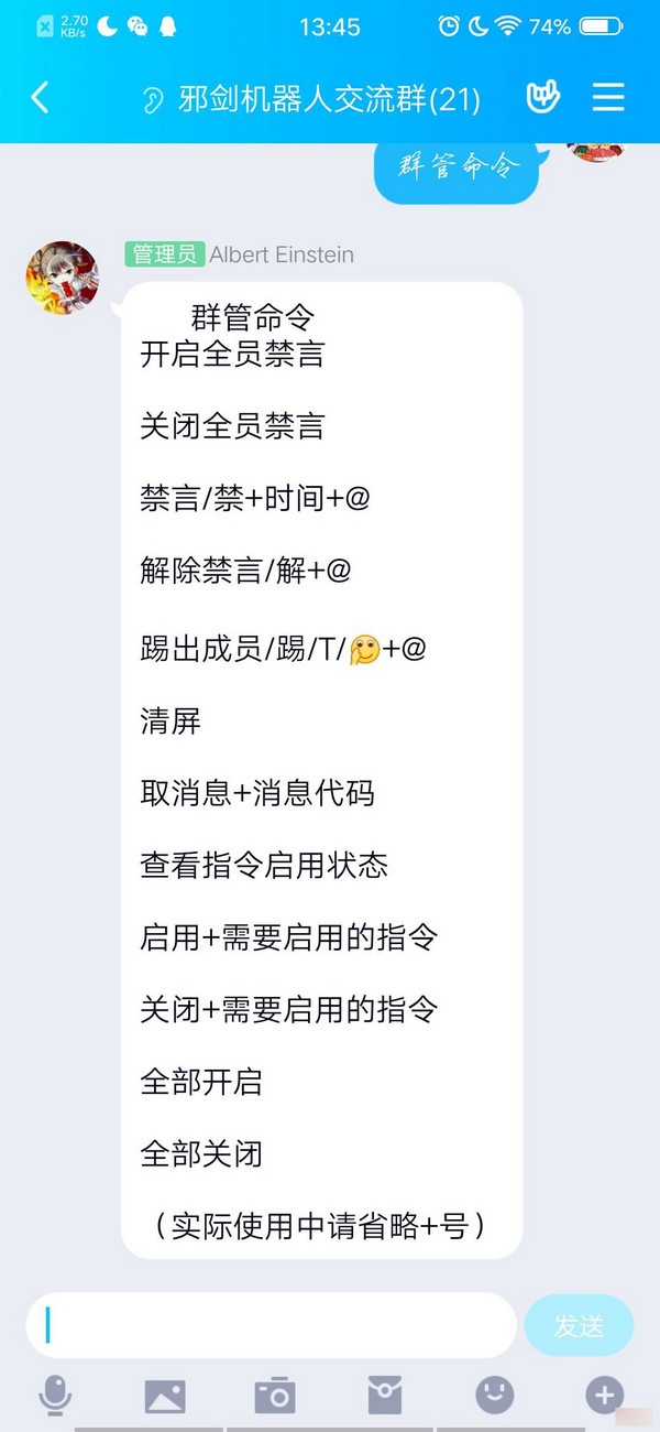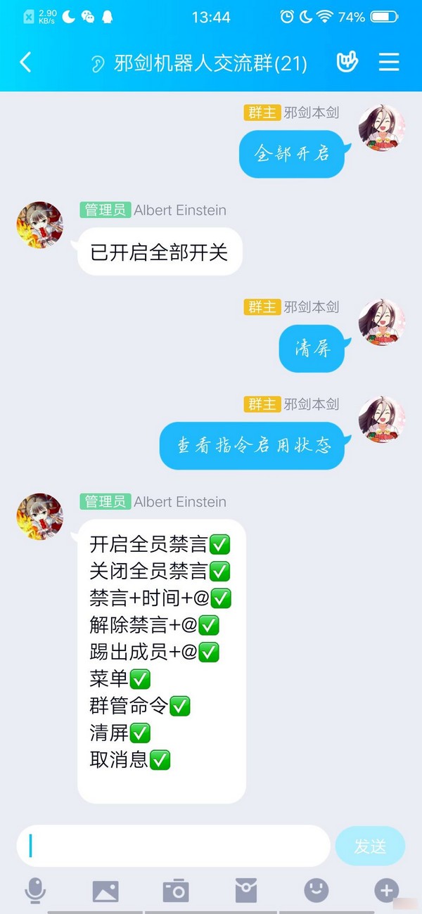 邪剑机器人官方版是一款非常不错的QQ群管机器人软件,本机器人基于酷Q框架,目前支持群管功能,娱乐功能后继开发,邪剑机器人官方版不仅能够支持Q群的管理,获取群成员的等级、昵称等信息,而且还具有修改个性签名、好友聊天等功能,简单又实用。