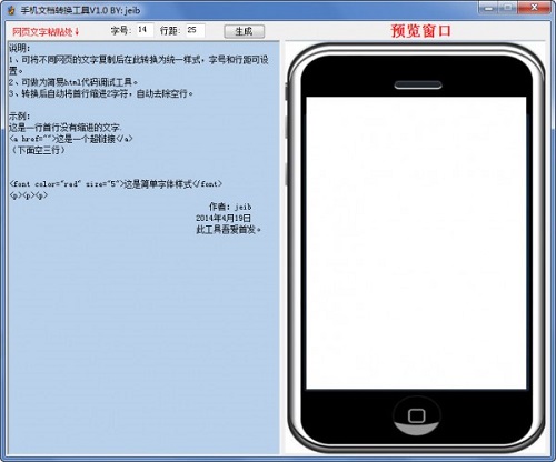 手机文档转换工具左边软件框是用户进行网页文字编辑的区域,右边则是预览窗口,用户可以对网页文字进行简单的调试编辑预览。
