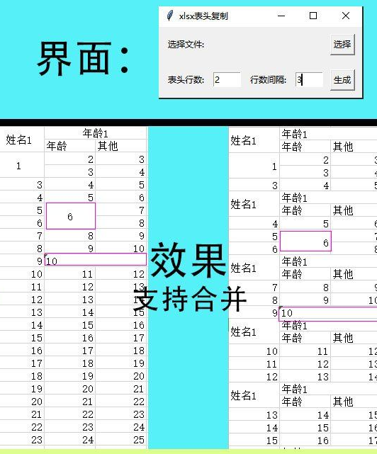 xlsx表头复制官方版主要功能,将工作表中的前几行,每隔固定的行数插入数据中间。然后另存为新的文件,保证原文件不被修改。