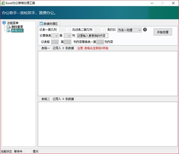 Excel办公表格处理工具正式版是一款优异、便捷、好用的办公软件,Excel办公表格处理工具正式版可以查找表格内重复的段落进行修改的小工具,可以以两个电子表格内容对比来找出相同内容,找到相同内容就可以下一步操作,用户可以设置替换哪表格哪一列。