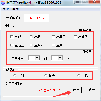 1、打开探花定时关机软件,设置日期和时间,选择定时操作的动作,保存即可