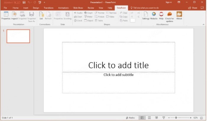 PresentationPoint DataPoint Standard官方版软件通过此便捷并且十分强大的加载项,能够帮助我们使用Excel、数据库以及文本文件来为我们实时更新PowerPoint演示文稿里面的内容。或许除了数学家以外,对于数字结构的数据和网格或者电子表格,大部分朋友们都提不起兴趣,所有我们才有图表,图形图像的诞生,相比较纯文字数字的表格来说,图像图像更容易吸引我们的兴趣,并且更加直观的表达了所需要表达的内容,所以使用PPT文档的朋友们更多。