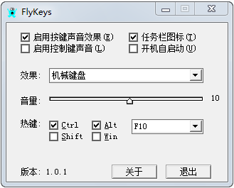 简单来说,它属于“击键发声器”的升级版,软件不占资源,不会拖慢系统速度,默认调出软件的热键为Ctrl+Alt+F10.