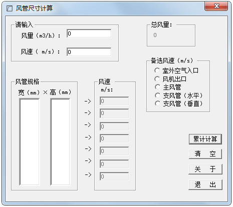 风管尺寸计算器绿色版是一款非常简单易用的风管尺寸计算器,这款风管尺寸计算器绿色版可以帮助风管设计制造者根据风量、风速来获得最佳风管规格,还能支持室外空气入口、风机出口、主风管等部位计算。风管尺寸计算器绿色版帮助一些风管设计人员进行尺寸大小的计算,通过风量、风速等参数通过专业公式快速计算出结果,非常好用。