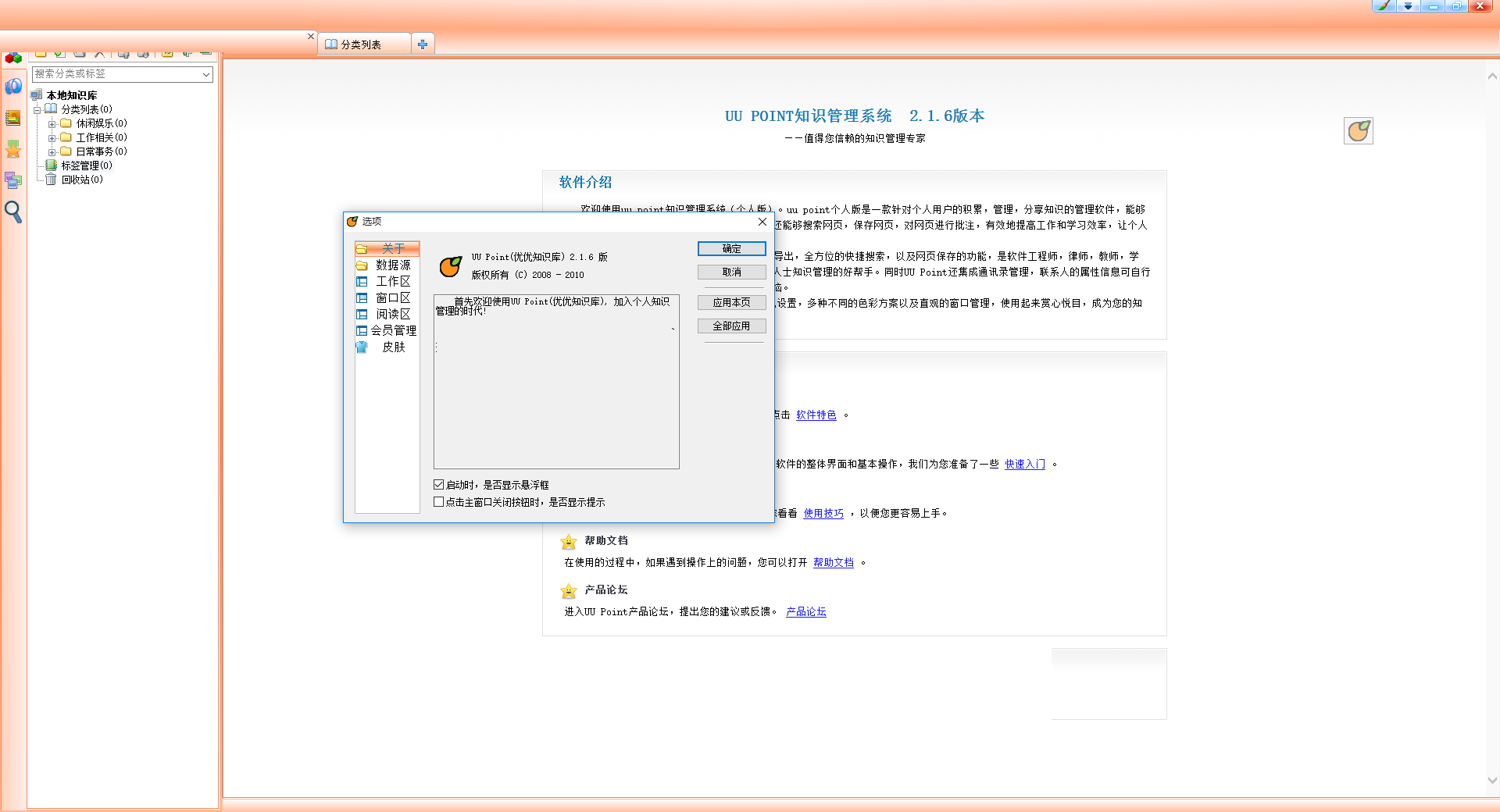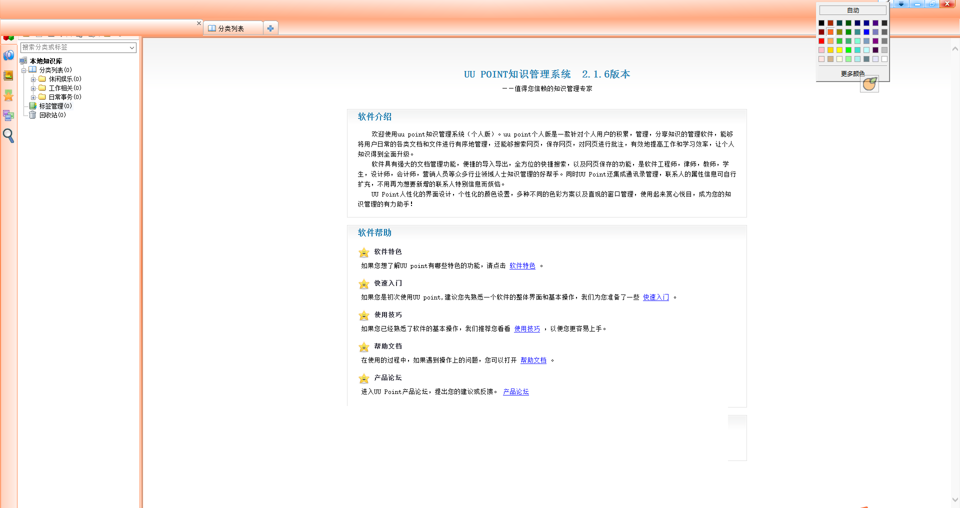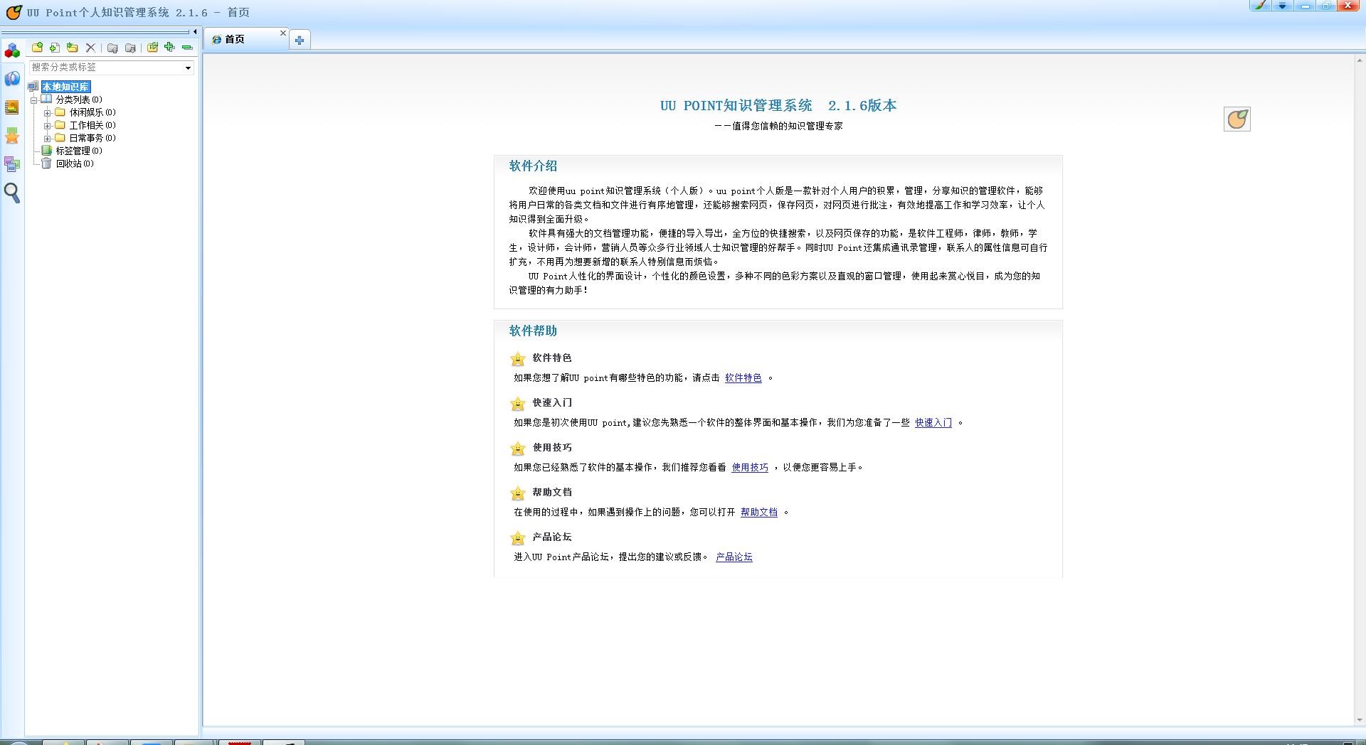 uu point个人知识管理系统官方版是一款专门针对个人知识设计打造的实用型管理工具。uu point个人知识管理系统官方版操作十分简单便捷,可以帮助用户将日常的各类文档和文件进行有效的管理,支持文档管理、网页保存、网页批注,通讯录管理等多项功能,是学习、组织、利用知识的好工具。uu point个人知识管理系统目的就是为了帮助用户快速的进行各种分类记录的管理,让您的文件夹可以更加的整洁。