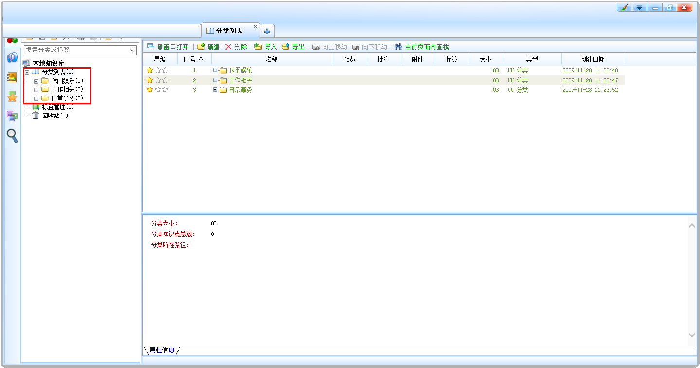 根据您的需要,可以对知识点的星级、名称、预览、批注、附件、大小、类型、修改日期,来进行排序。