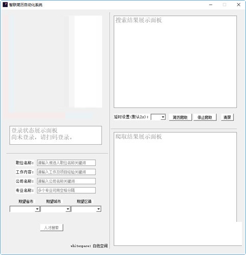 智联简历自动化系统最新版实际为各HR提供一个在智联招聘筛选简历时提供一个更加方便的工具,功能如图。坚决反对使用商业用处,否则后果自负!!