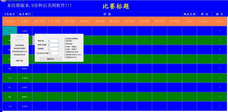 3、可以对参数进行快速的设置,包括了最高的分值、参赛队伍数量、评委数量等;