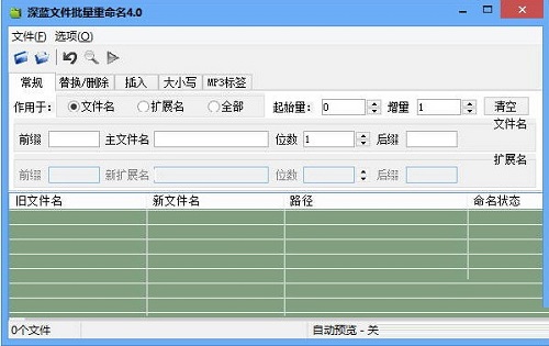 1、深蓝文件批量重命名工具最新版支持批量插入文字、插入序号、替换字符、文件名转大小写等,插入位置可随意控制。