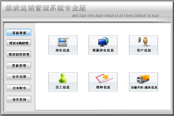 单位信息、煤源单位信息、客户信息、员工信息、煤种信息、运输车队/船队信息