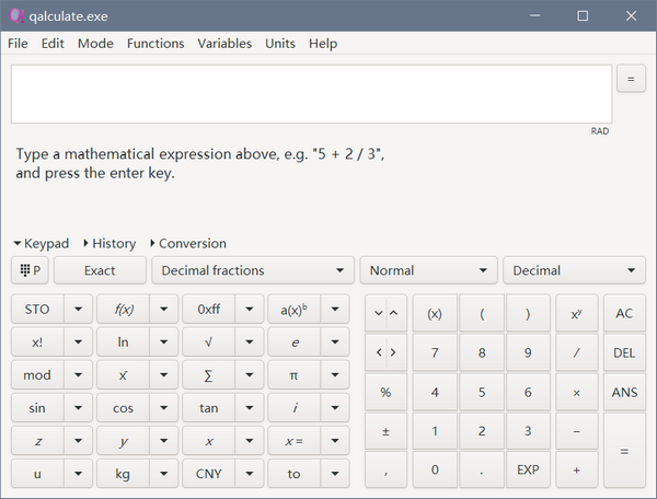 Qalculate官方版是一款简单实用的桌面计算机软件,Qalculate官方版支持货币转换、百分比计算、自定义函数库、单位换算及计算、物理常数库、符号计算(包含积分和方程)、高精度计算、误差传递、区间算法、绘图等超级多的功能,通过Qalculate!用户能够计算出无数种公式和数学答案,可以说,除了论证,Qalculate!拥有几乎所有与公式相关的功能,非常强大。