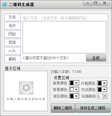 二维码制作生成器最新版是二维码行业经常可见的二维码制作软件。二维码制作生成器最新版拥有超快的解码速度,可以多窗口,多任务执行。二维码制作生成器除了通常的网址二维码、名片二维码,二维码制作生成器还可以制作文本、短信、电话、wifi网络等二维码图示,是二维码行业必备工具。