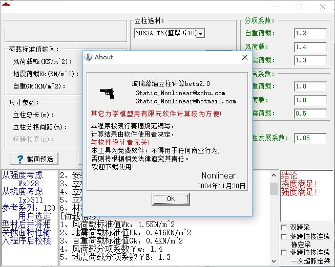 墙立柱计算工具官方版可以计算出幕墙立柱挠度和强度是否符合标准。