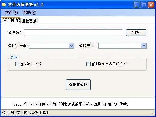 海鸥文件内容替换最新版是款提供了单个与批量替换的文件内容替换软件。海鸥文件内容替换最新版可以不需要打开文件,即可替换单个文件或多个文件内容。它在替换时能够保证文件的安全性和完整性。替换字符的设置和替换文件的设置简单方便。