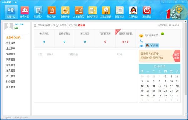 一站招聘最新版在招聘中心可以直接查询人才网的未读消息及阅读简历、下载简历。以及管理账户信息、会员信息等等……