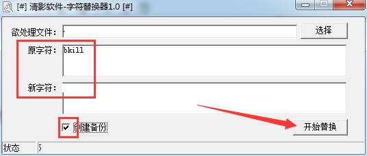 3、输入原字符和新字符,勾选创建备份,点击开始即可。