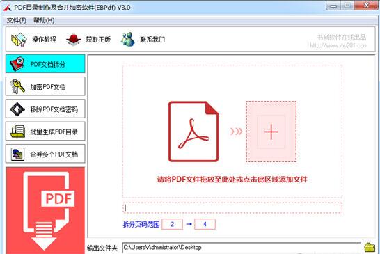 PDF目录制作及合并加密软件官方版是一款非常安全可靠且值得信奈的pdf文件目录制作软件,PDF目录制作及合并加密软件官方版可以轻松把PDF文件添加目录,并且还具有合并多个PDF文件并自动生成目录、PDF文件加密、PDF文件拆分等功能,只要把PDF文件拖到软件中,即可一键完成。