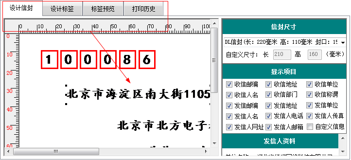 02、灵活的打印项目调整功能,可以设定打印那些项目和不打印那些项目,所见即所得的信封模版编辑功能让打印设计工作瞬间完成;