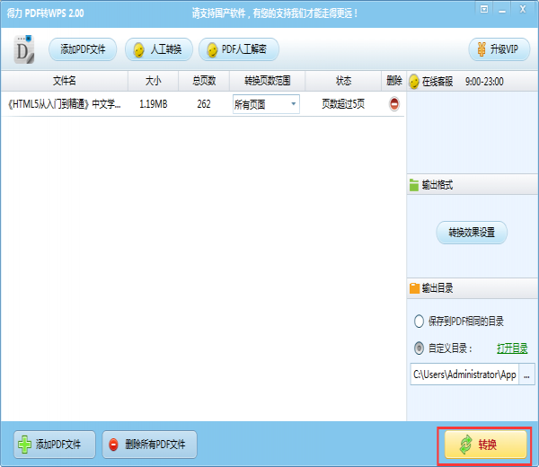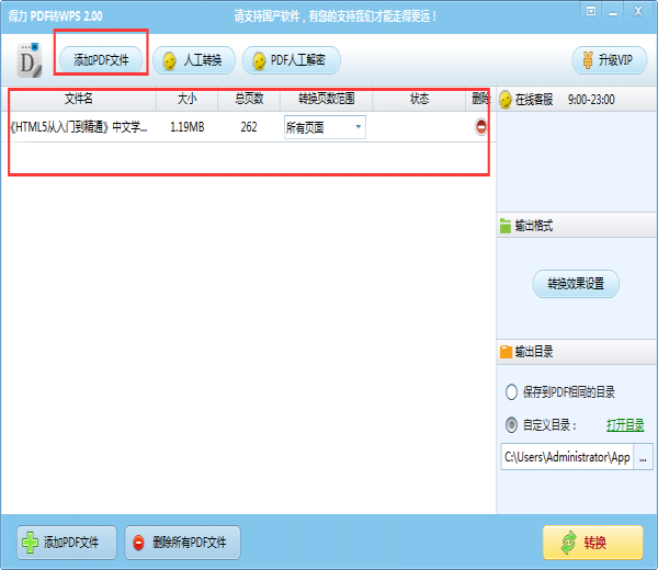 PDF是加密的,请先在软件中输入PDF文档密码,然后就可以直接转换了。得力PDF转WPS支持批量添加PDF文档,你可以直接把文件拖拽到窗口里,或