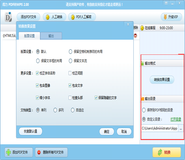 得力PDF转WPS最新版是款非常出色且又功能齐全的pdf格式文件转换成wps格式文件的软件,得力PDF转WPS最新版可以编辑的pdf文件转换为可编辑的wps文档。还可以最大限度取出pdf文件中的图片,或者进行文件二次排版,是款相当优秀的软件。