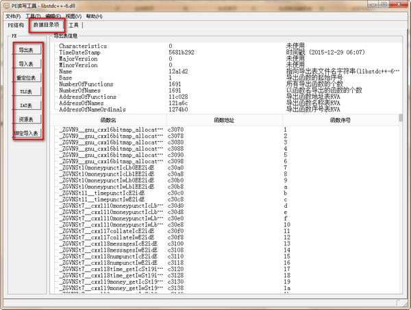 二、软件会自动导出PE信息,用户可以根据左边的功能栏选择要查看的信息