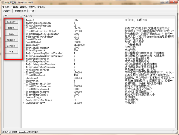 PE文件读写工具绿色版是一款非常方便好用的个人向轻型PE读写工具软件,通过简单的对文件的读写,可以知道很多文件的代码以及具体制作流程,PE文件读写工具支持PE信息、DOS头、PE头的查询功能,同时还支持导出到文件的功能。