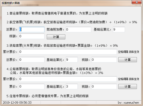 报票税额计算器绿色版是一款十分好用的计算工具,很多用户在出差的时候买的住宿票飞机牌火车票都可以用来抵税,但是在计算时就会显得特别麻烦,只要有了这款软件就会方便不少,通过这款软件用户可以轻松的计算各项税款,非常方便。