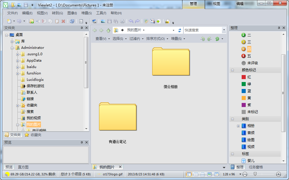作为一个文件管理软件, Viewlet 提供了强大的文件浏览功能, 有多达8种浏览模式可供选择, 除了包含 Windows 传统的5种模式: