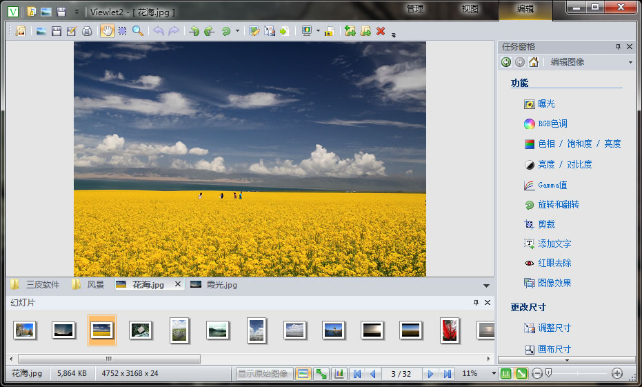 快速打开关联图片; 全屏浏览、幻灯放映、智能缩放, 一切都不是问题.